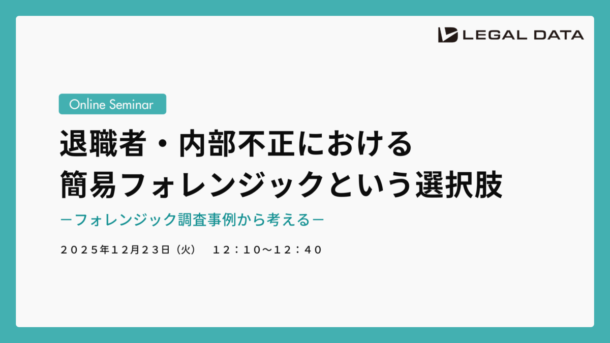 本セミナーでは、実際の退職者・内部不正といったフォレンジック調査事例をもとに、外部調査に進む前段階としての「簡易フォレンジック」という現実的な選択肢をご紹介します。